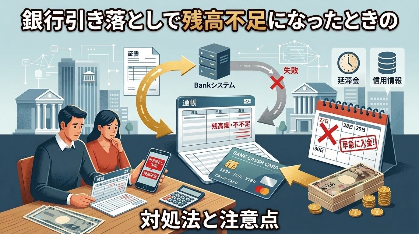 銀行口座の残高不足で引き落としができなかった場合、対応が遅れるほど遅延損害金や利用停止などの不利益につながる可能性があります。